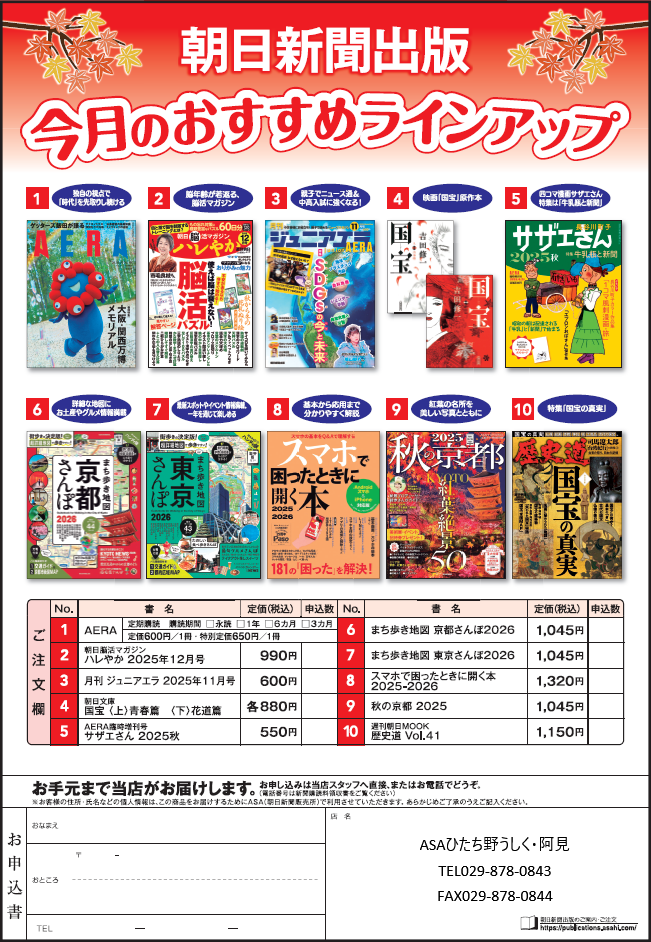 ■朝日新聞出版■売れ筋出版物「今月のおすすめラインアップ」