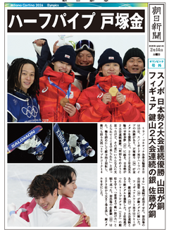 五輪8日目、スノーボード男子ハーフパイで、戸塚選手が金メダル、山田選手が銅メダル...